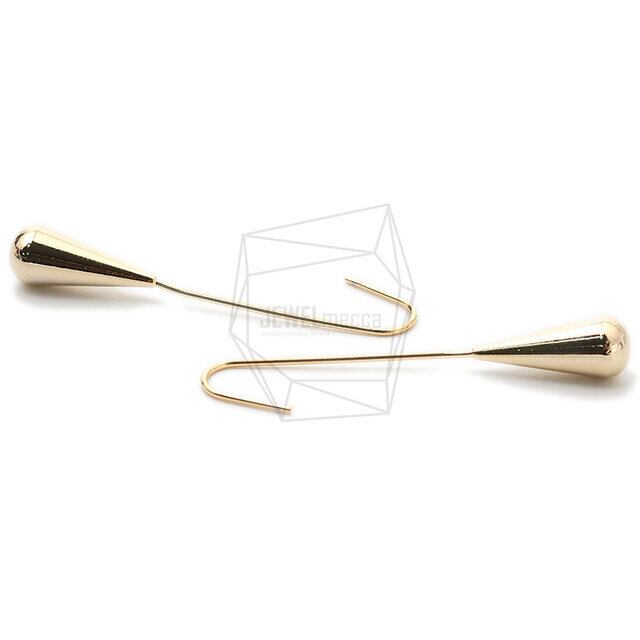 ERG-1558-G/2PCS/Curved Plate Hook Earring/7mm x 48mm/Gold Plated over Brass
