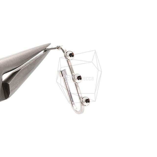 ERG-1561-R/2PCS/Pearl Cup Bar Post Earring/10mm x 23mm/Rhodium Plated over Brass,Stainless Post