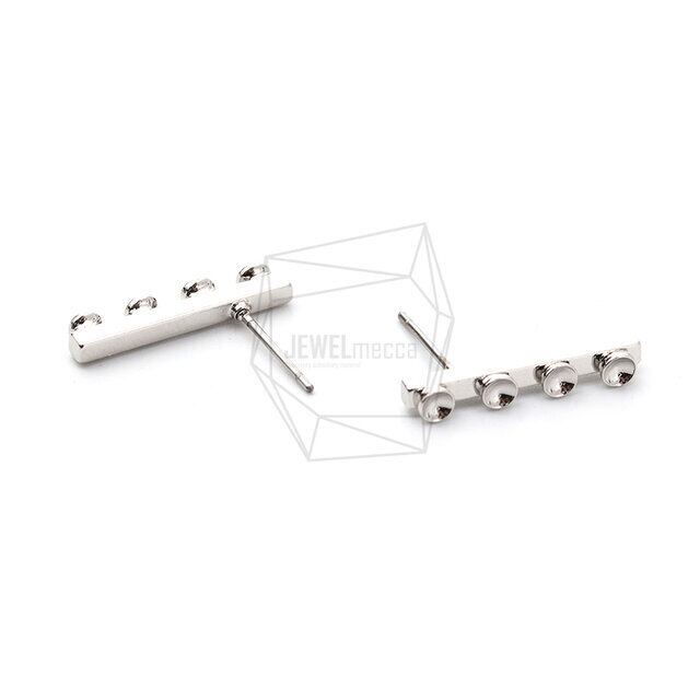 ERG-1562-R/2PCS/Pearl Cup Bar Post Earring/3mm x 20mm/Rhodium Plated over Brass,Stainless Post