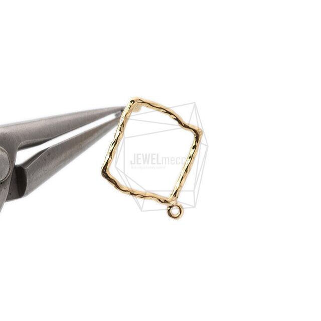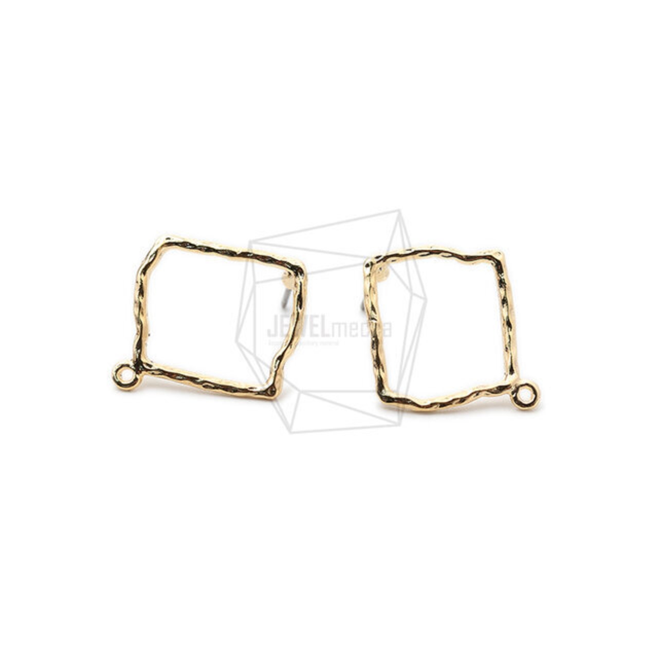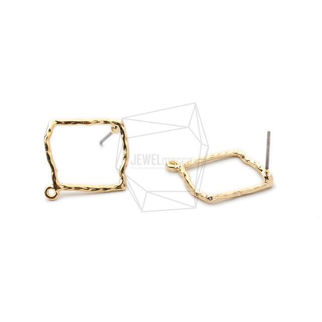 ERG-1551-G/2PCS/Hammered Rhombus Ear Post/20mm x 21mm/Gold Plated over Brass, Titanium post