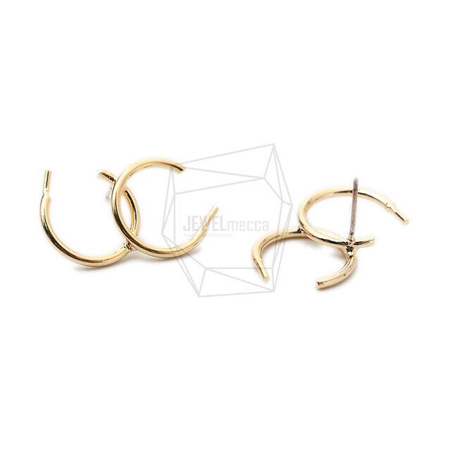 ERG-1552-G/2PCS/Cross semicircle Post Earring/15mm X 25mm /Gold Plated Over Brass,silver post