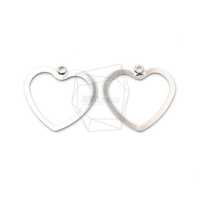 PDT-2389-R/2PCS/Heart Outline Pendant/20mm x 22mm/Rhodium Plated over Brass