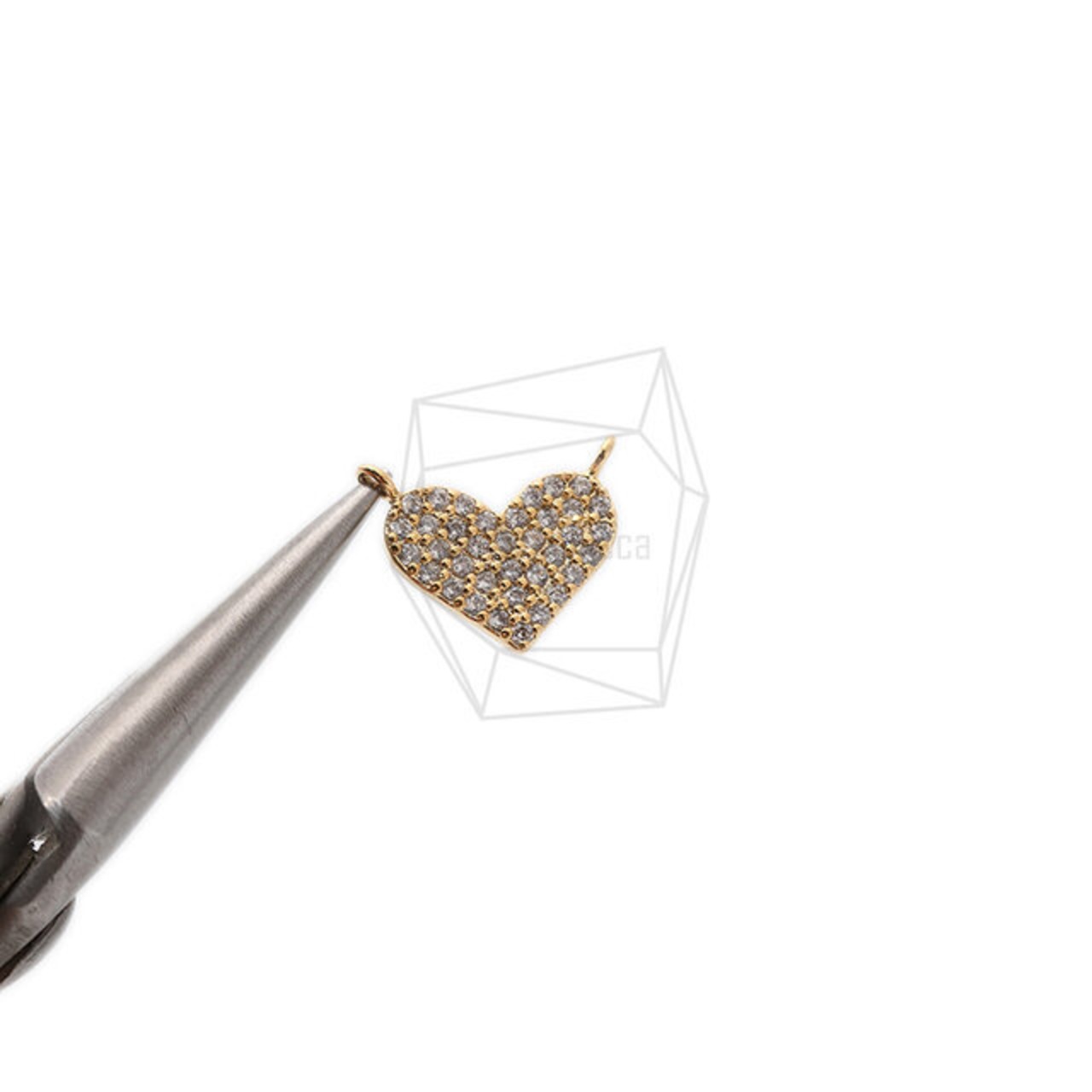 PDT-2394-G/2Pcs- Cubic Zirconia Setting heart Pendant/ 10mm X 13mm/Gold Plated over brass