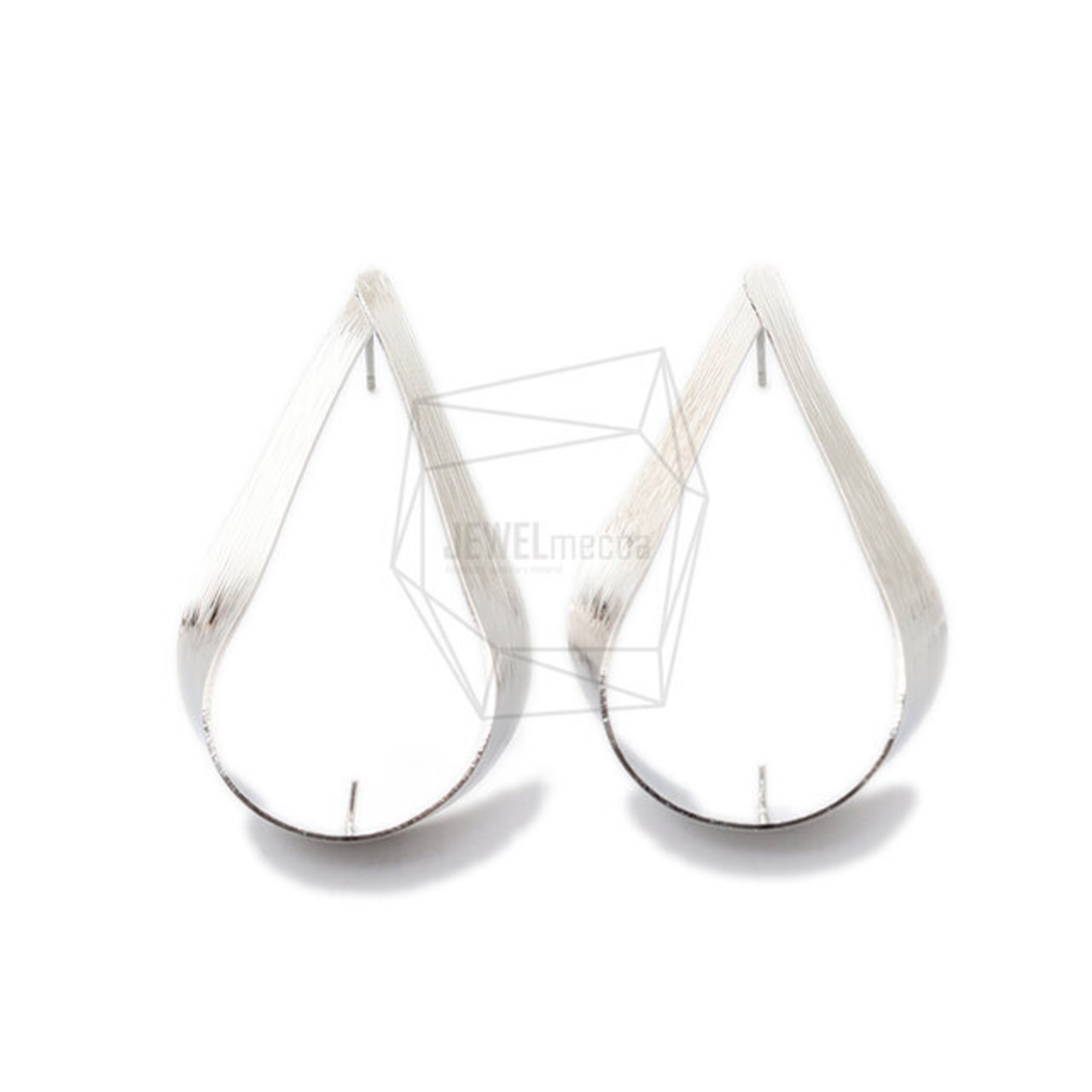 ERG-1569-R/2Pcs-Teardrop Post Earring/ 30mm x 53mm/Rhodium Plated Over Brass,Titanium post
