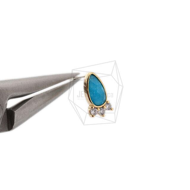 ERG-1573-G/2Pcs-Stone round Ear Post/ 6mm x 12mm /Gold Plated over Brass/925 sterling silver post