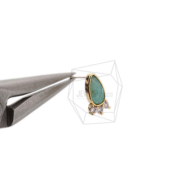 ERG-1576-G/2Pcs-Stone round Ear Post/ 6mm x 12mm /Gold Plated over Brass/925 sterling silver post