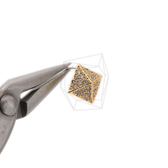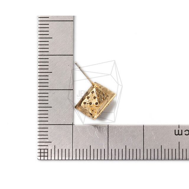 ERG-1577-G/2PCS/CZ Textured Pyramid Ear Post/13mm x 13mm/Gold Plated Over Brass