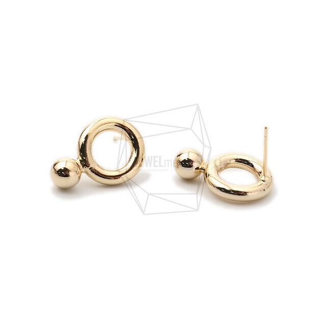 ERG-1583-G/2PCS/Circle ball Earring Post/13mm x 19mm/Gold Plated over Brass