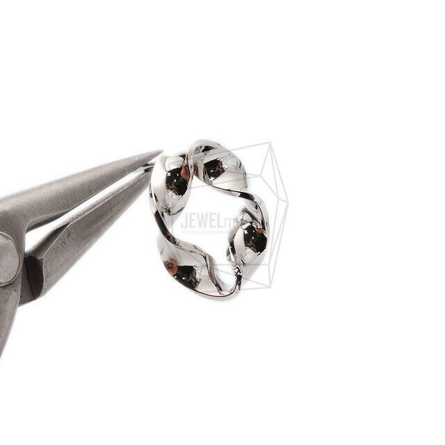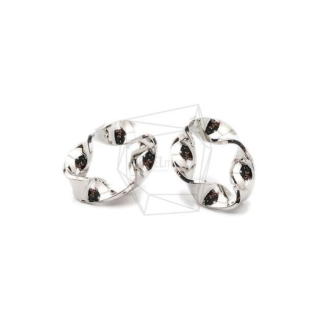 ERG-1584-R/2PCS/Wave Round Ear Post/ 13mm x 18mm/Rhodium Plated Over Brass