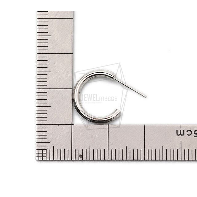 ERG-1591-R/2PCS/Hoop Post Earrings/13mm X 15mm/Rhodium Plated Over Brass