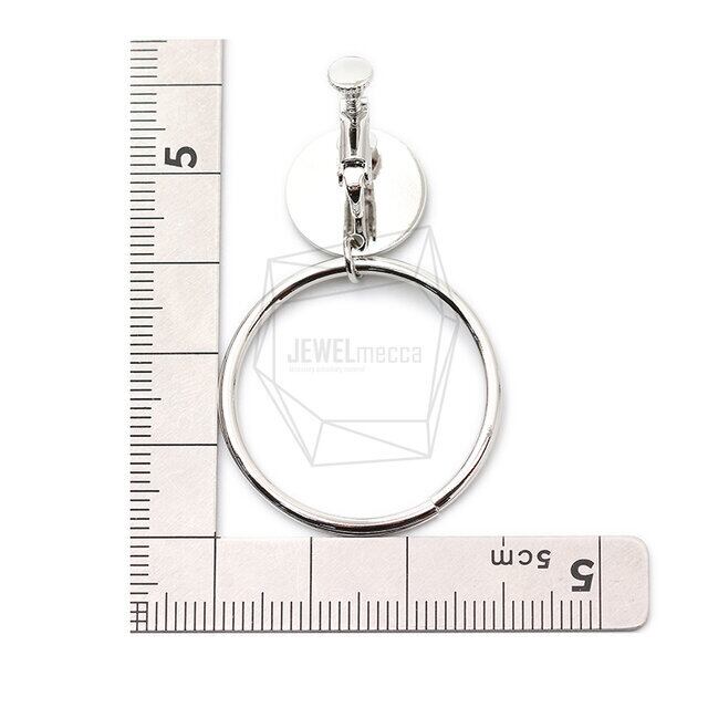 ERG-1581-R/2PCS/Two Circles Non Pierced Screw Back Clips Earring/30mm X 45mm/ Rhodium Plated Over Brass