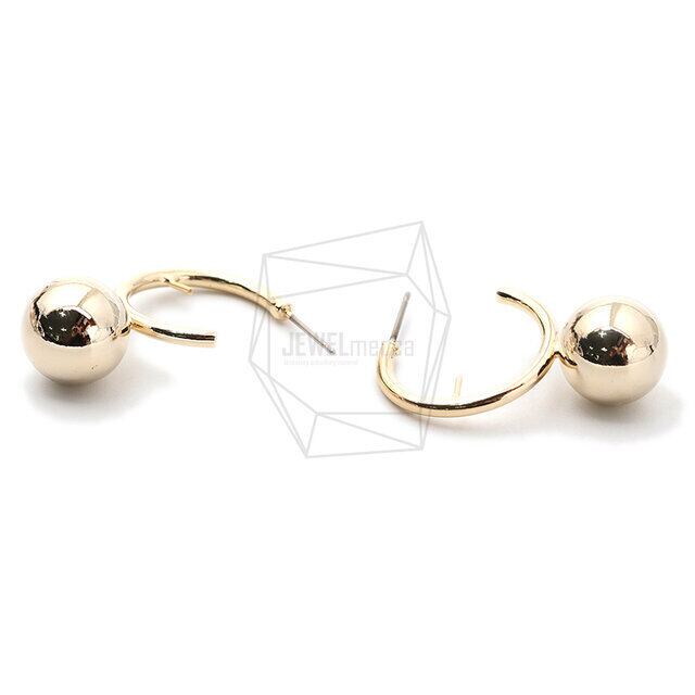 ERG-1607-G/2Pcs-Round ball Ear Post/ 18mm x 30mm/Gold Plated over Brass,Titanium post