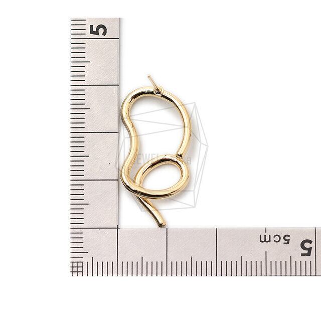ERG-1594-G/2Pcs/Pretzel Post Earring/15mm x 29mm/Gold Plated Over Brass