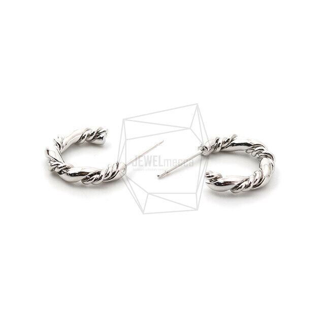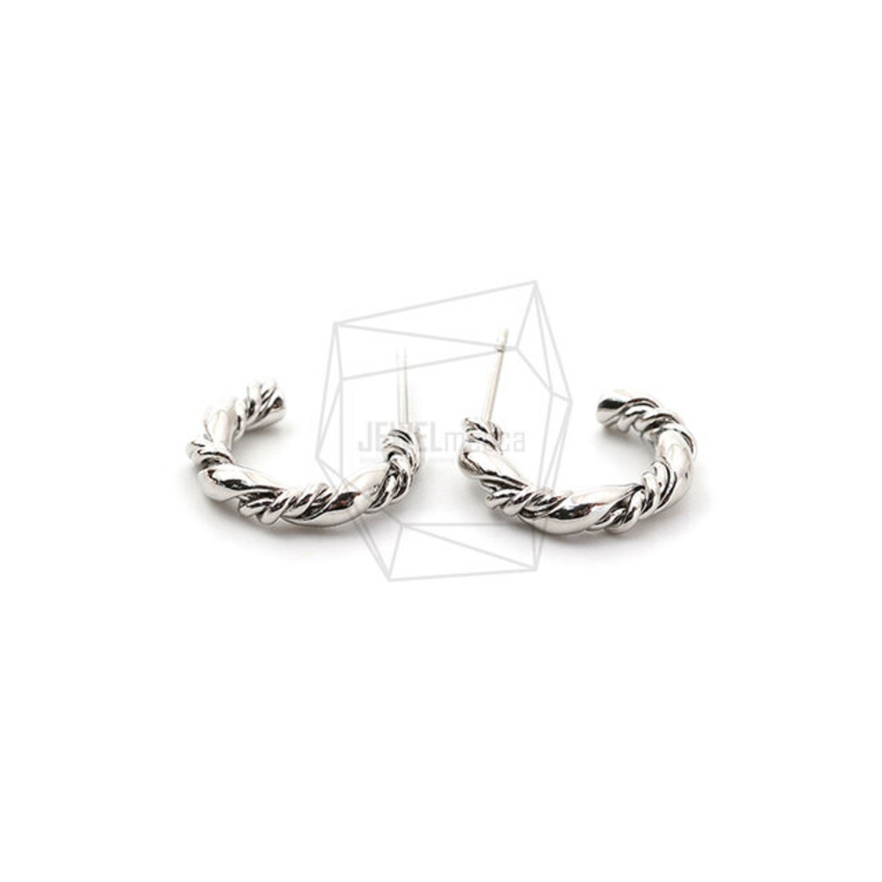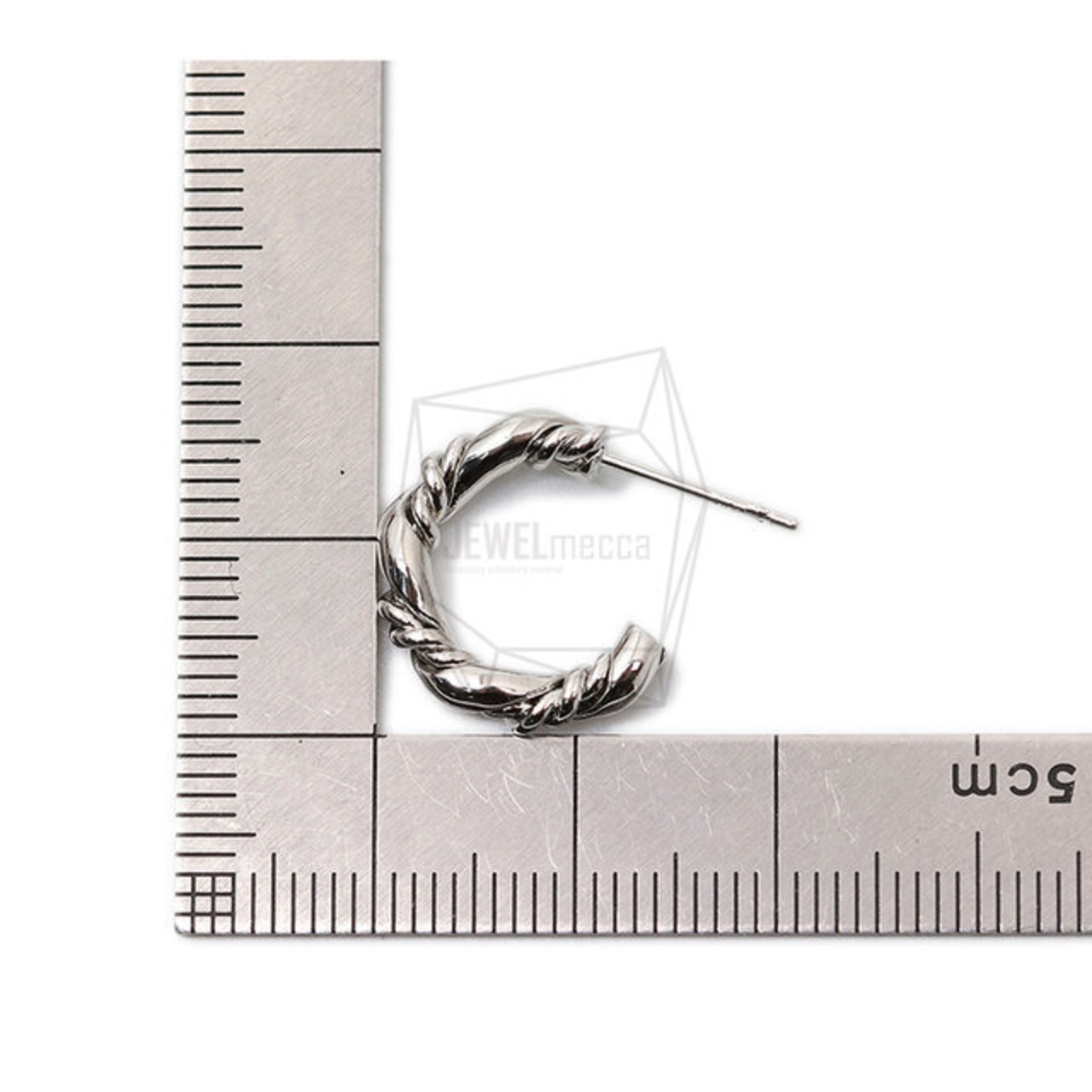 ERG-1593-R/2PCS/Hoop Post Earrings/13mm X 16mm/Rhodium Plated Over Brass