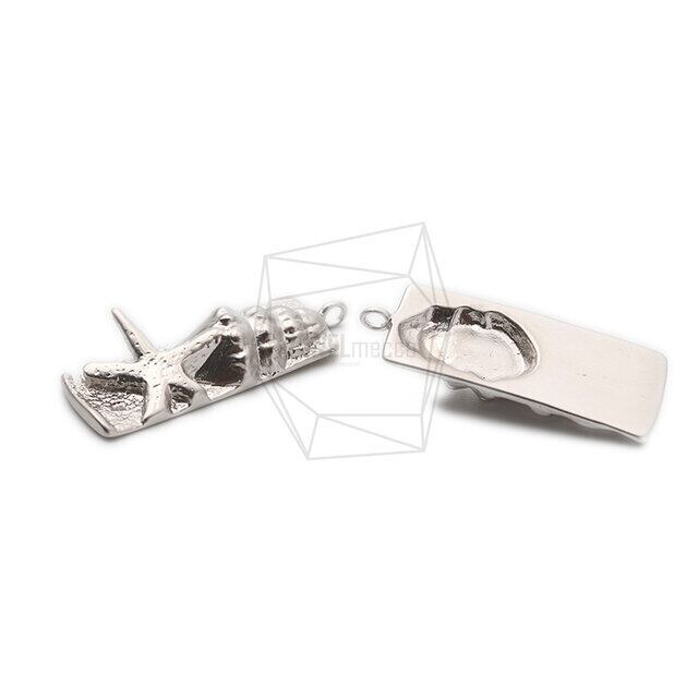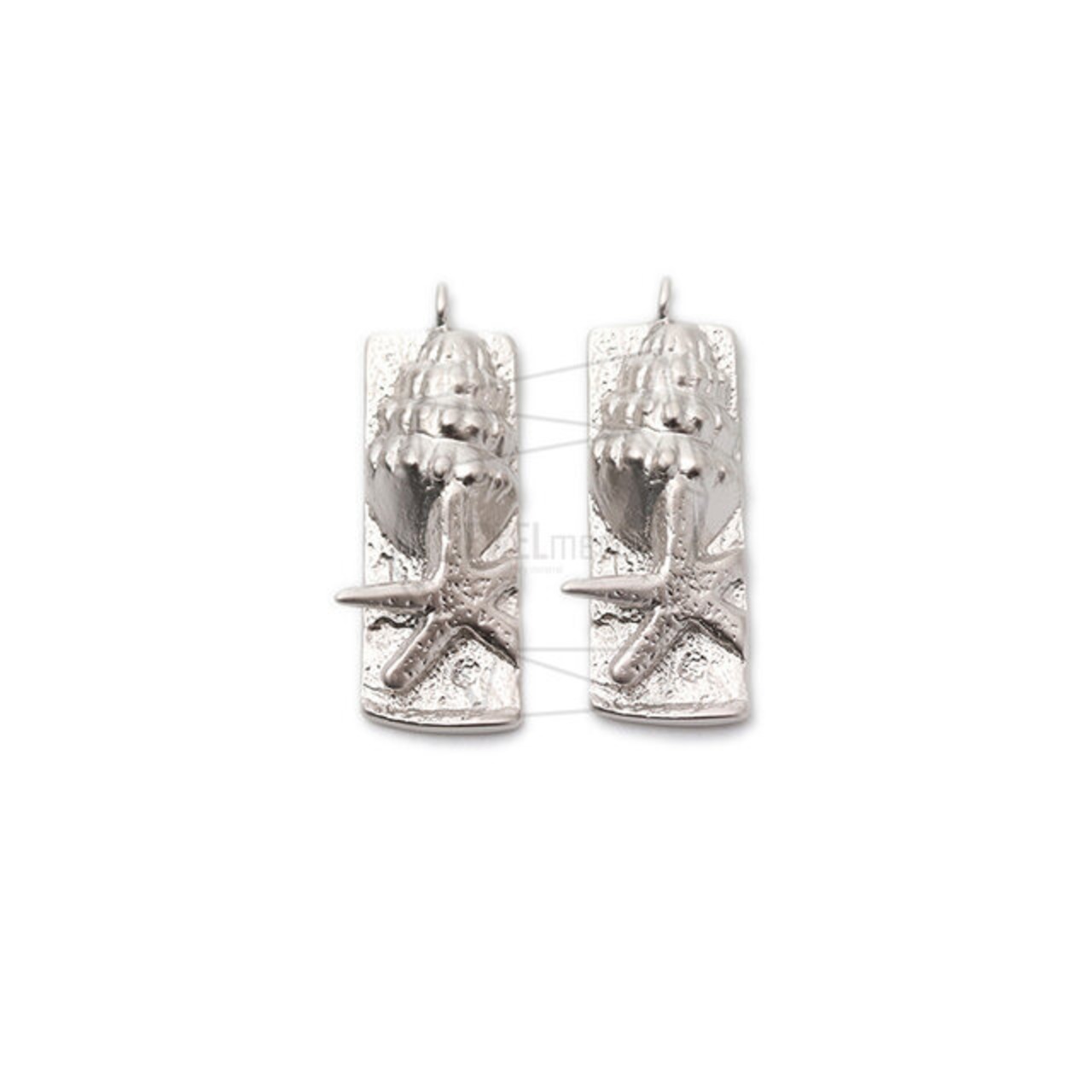 PDT-2396-MR/2Pcs-Shell on the starfish Charm/10mm x 23mm/Matte Rhodium Plated Over Brass