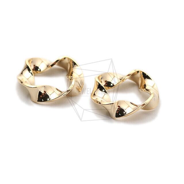 PDT-2401-G/2PCS/Twist Round Pendant/19mm X 19mm/Gold Plated Over Brass