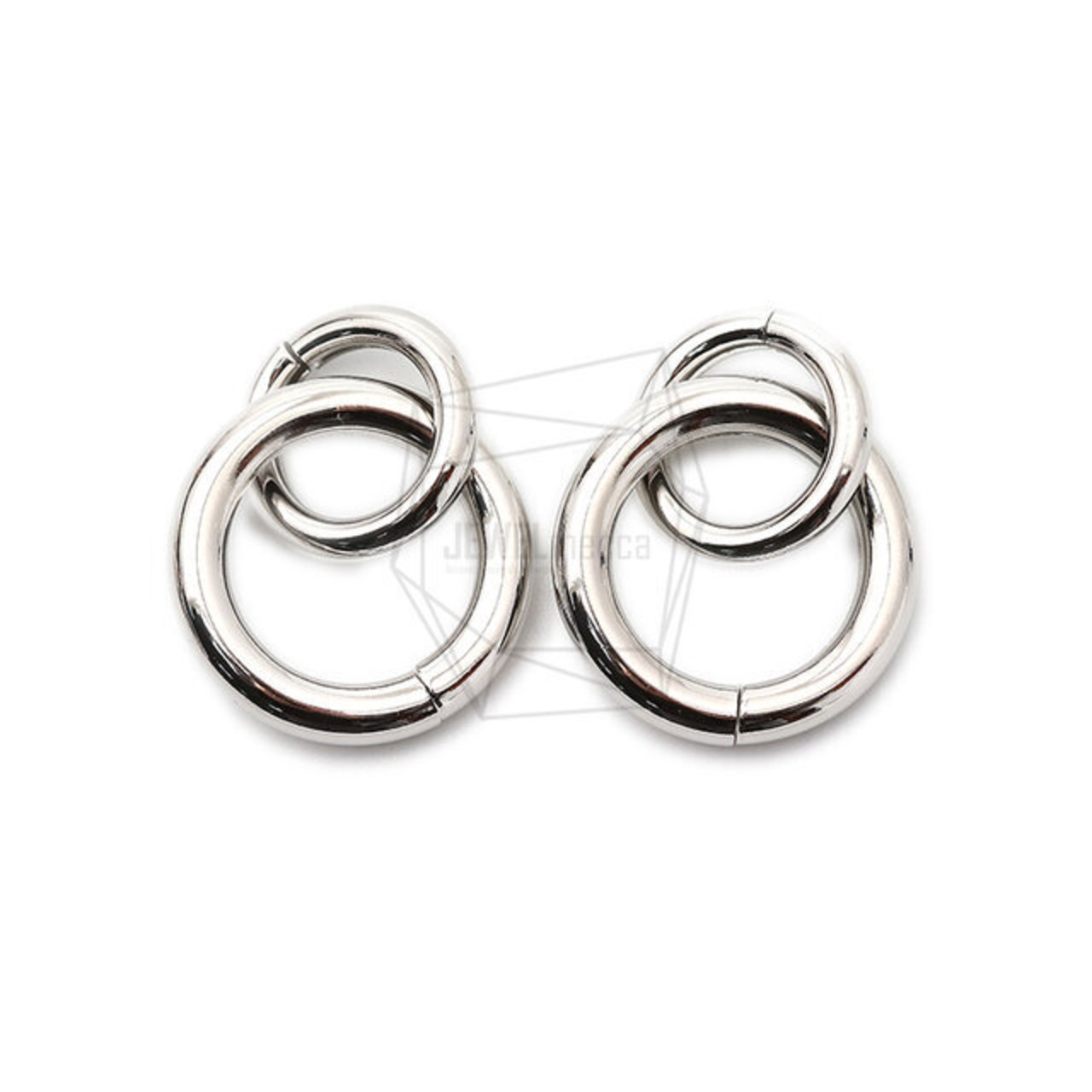 PDT-2402-R/2PCS/Double Round Earring Charm/ 22mm X 28mm/Rhodium Plated Over Brass