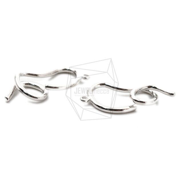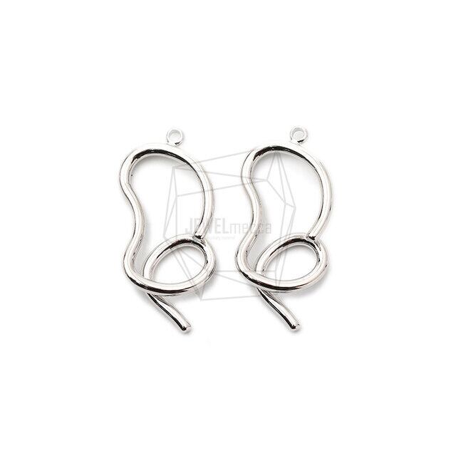 PDT-2405-R/2Pcs/Pretzel Pendant/15mm x 32mm/Rhodium Plated Over Brass
