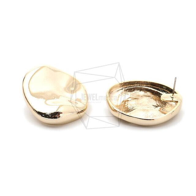 ERG-1602-G/2PCS/Hammered round Earring /28mm x 32mm/Gold Plated Over Brass/925 Sterling Silver Post