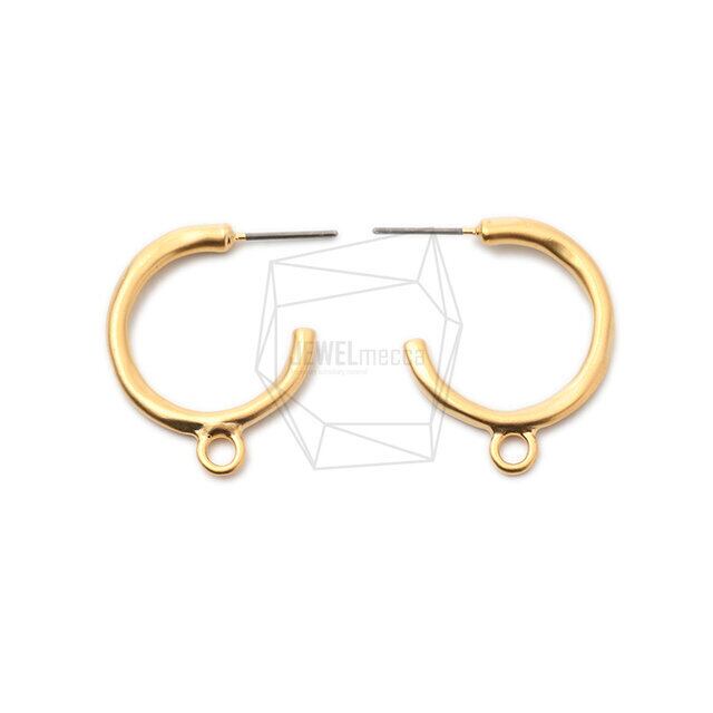 ERG-1603-MG/2PCS/Hammered L Shape Earring /20mm x 26mm/Matte Gold Plated Over tin/Titanium post
