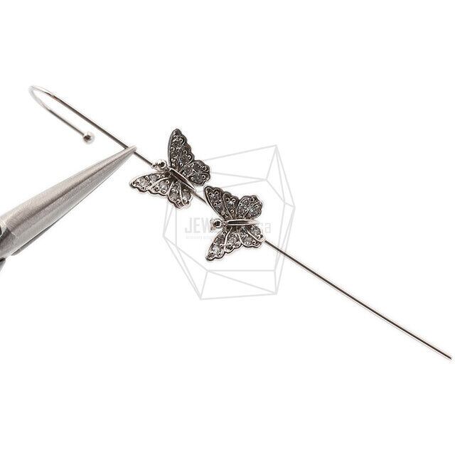 ERG-1615-R/1PCS/Ear Wrap Crawler, Hook Cuff/0.8mm x 73mm/Rhodium Plated over Brass,CZ