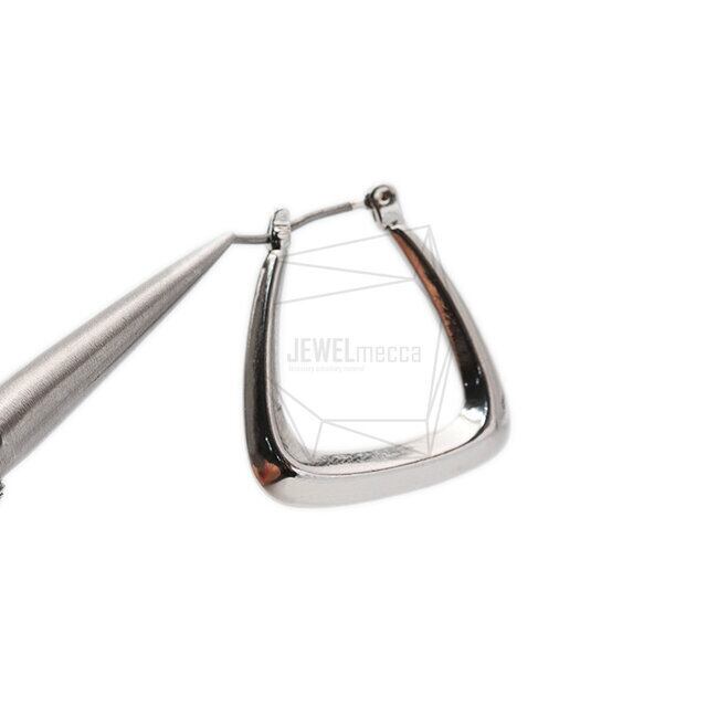 ERG-1620-R/2PCS/L shape post Earring,20mm x 22mm/Rhodium Plated Over tin/Stainless Post