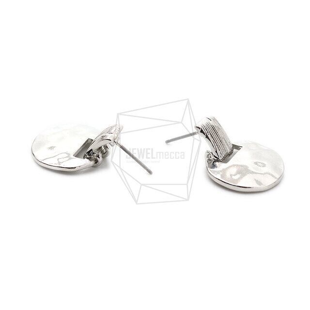 ERG-1622-R/2PCS/Hammered round Earring /18mm x 25mm/Rhodium Plated Over Tin/Stainless Post