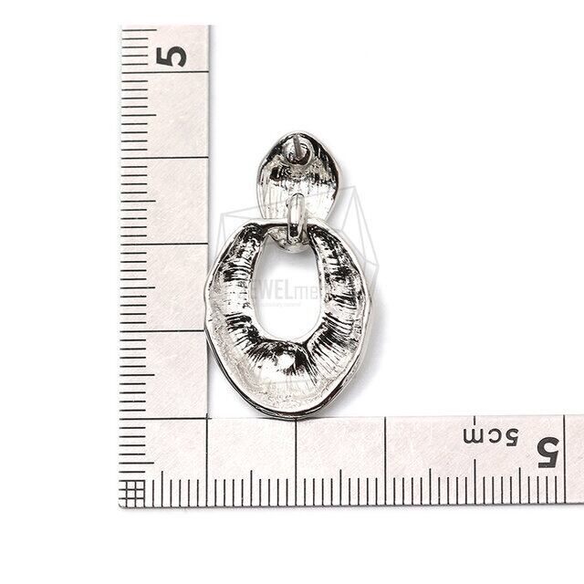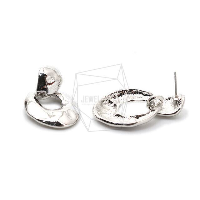ERG-1623-R/2PCS/Hammered round Earring /19mm x 32mm/Rhodium Plated Over Tin/Stainless Post