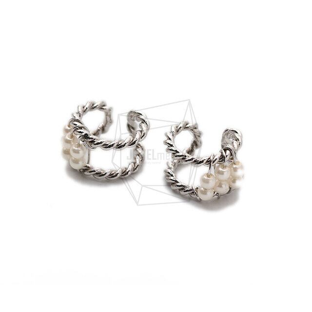 ERG-1628-R/2PCS/Round Earcuffs Earrings/16mm X 18mm/Rhodium Plated Over Brass,Imitation pearl