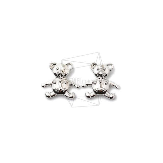 PDT-2425-R/2PCS/Teddy Bear Pendant/15mm x 16mm/Rhodium Plated Over Tin