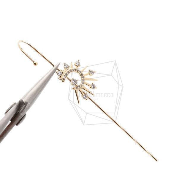 ERG-1637-G/1PCS/Ear Wrap Crawler, Hook Cuff/0.8mm x 73mm/Gold Plated over Brass,CZ