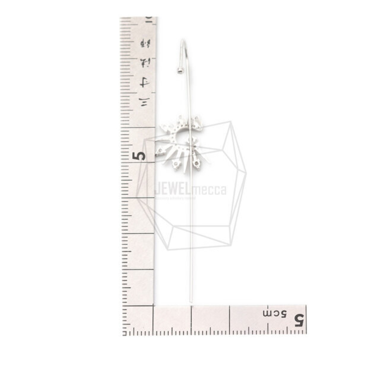 ERG-1637-R/1PCS/Ear Wrap Crawler, Hook Cuff/0.8mm x 73mm/Rhodium Plated over Brass,CZ