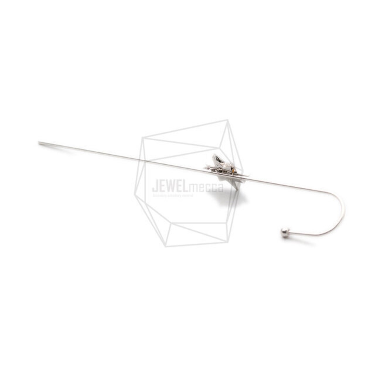 ERG-1638-R/1PCS/Ear Wrap Crawler, Hook Cuff/0.8mm x 73mm/ Rhodium Plated over Brass,CZ