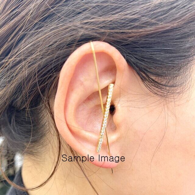 ERG-1642-G/1PCS/Ear Wrap Crawler, Hook Cuff/0.8mm x 73mm/Gold Plated over Brass,CZ