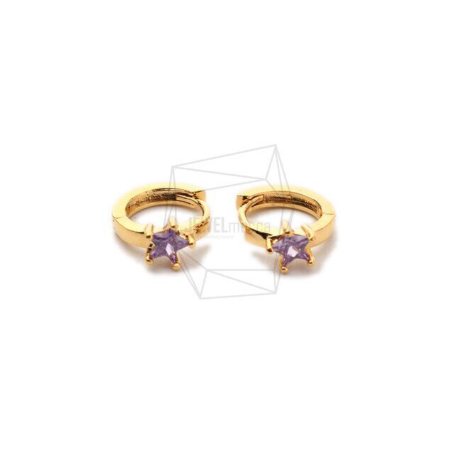 ERG-1646-G/2PCS/Round CZ Post Earring/10mm x 12mm/Gold Plated over Brass,Cubic Zirconia