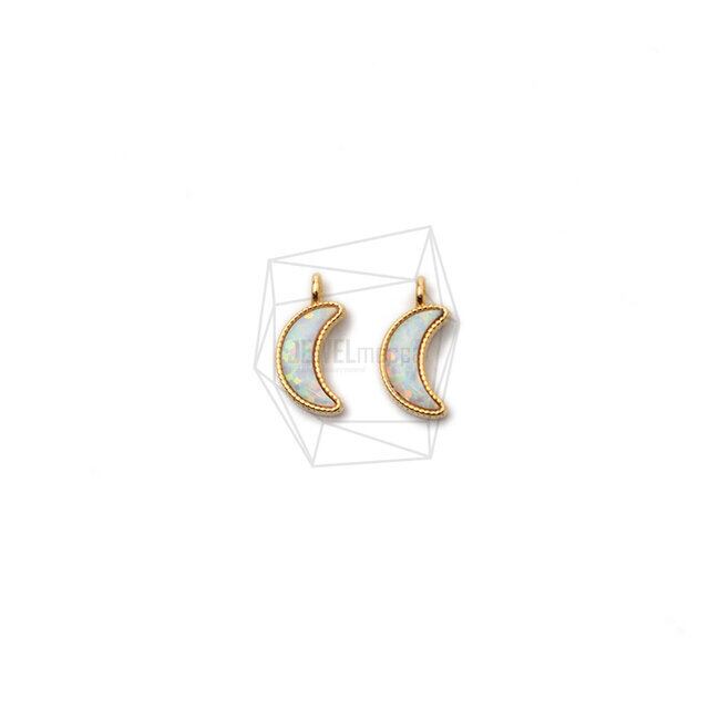 PDT-2430-G/2PCS/Synthetic opal Moon Pendant/5mm X 10mm/Gold Plated Over Brass