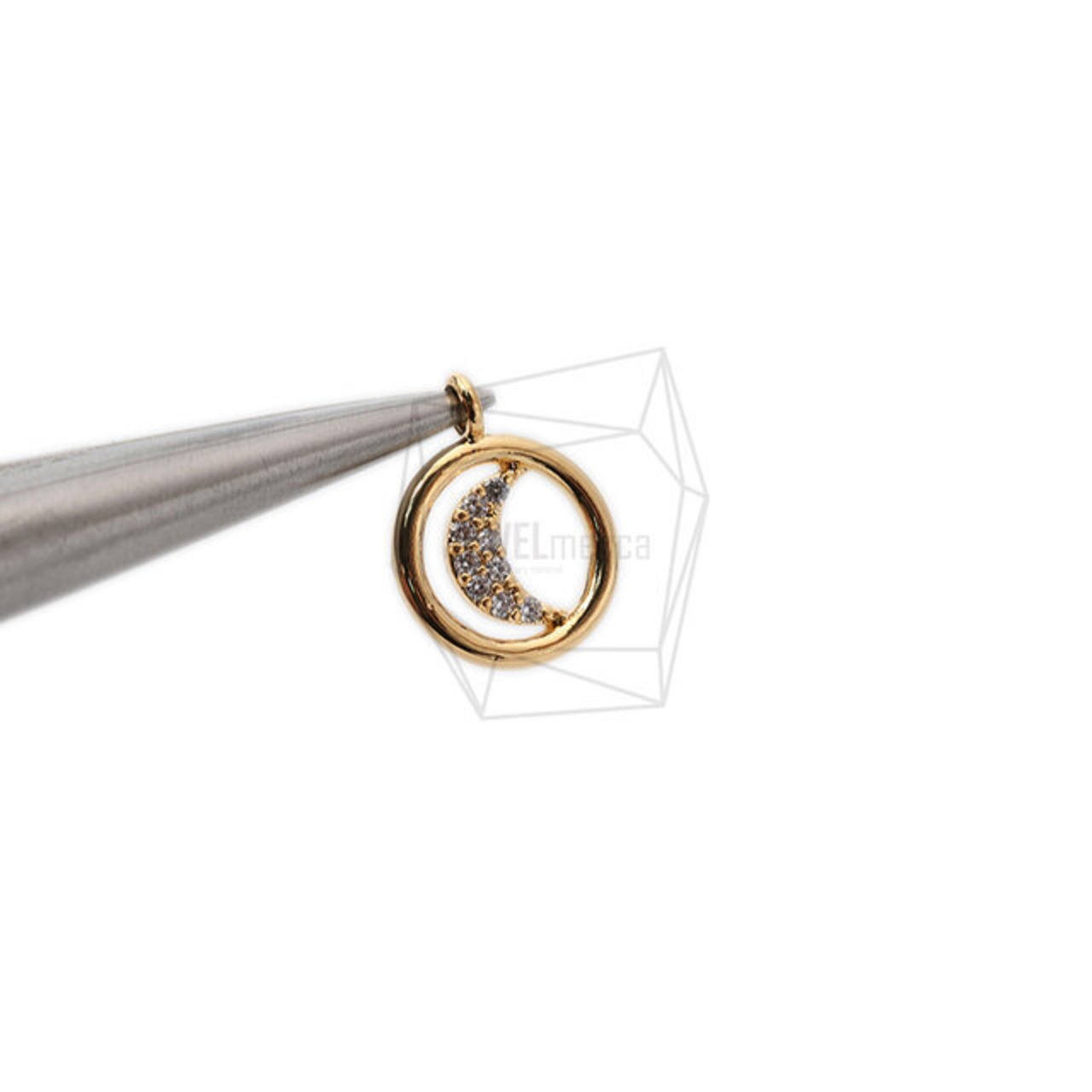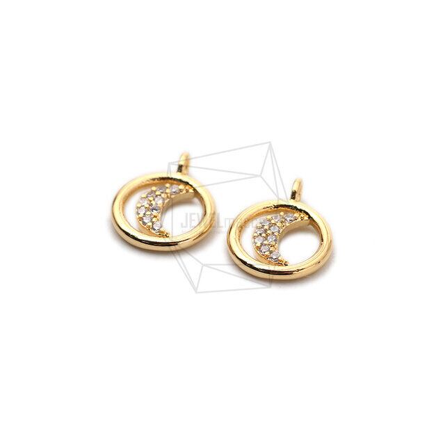 PDT-2433-G/2Pcs- Cubic Zirconia Setting Moon Pendant/ 9mm X 11mm/Gold Plated over brass