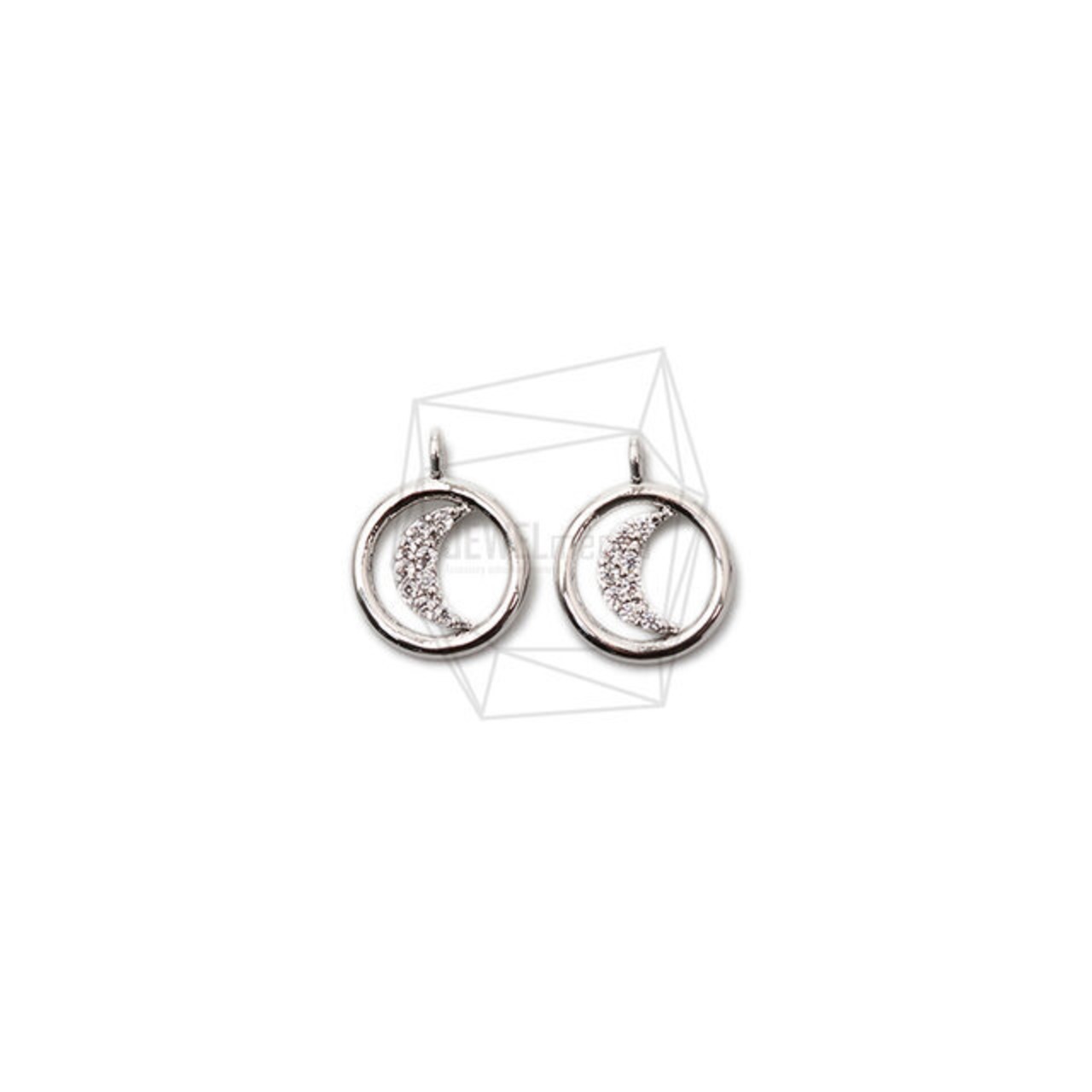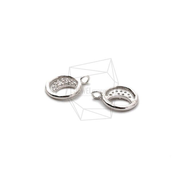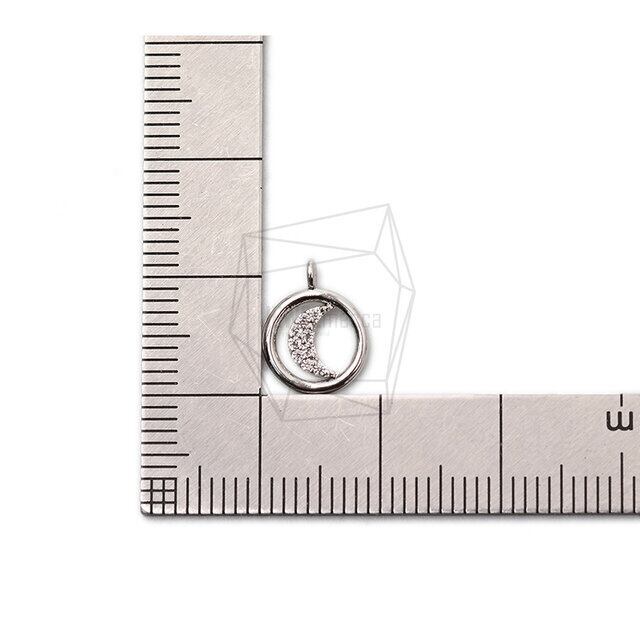 PDT-2433-R/2Pcs- Cubic Zirconia Setting Moon Pendant/ 9mm X 11mm/Rhodium Plated over brass