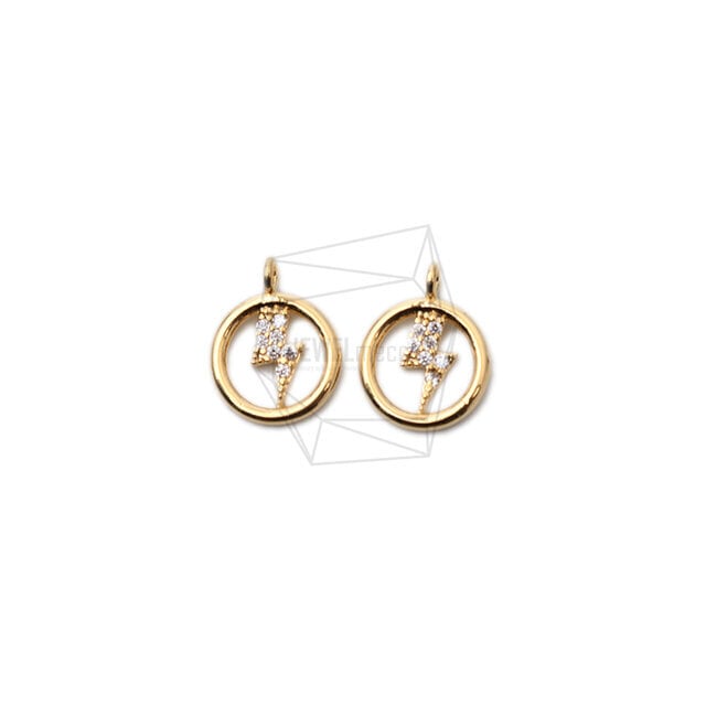 PDT-2435-G/2Pcs- Cubic Zirconia Setting Lightning Pendant/ 9mm X 11mm/Gold Plated over brass