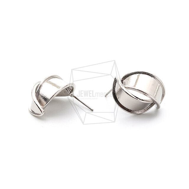 ERG-1648-R/2PCS/Double L Shape Post Earring /14mm x 21mm/Rhodium Plated Over Brass/Stainless Post