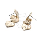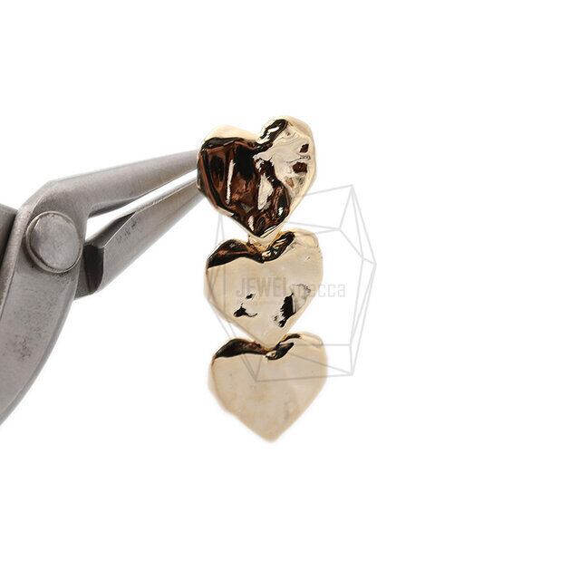 ERG-1649-G/2PCS/Triple heart Post Earring/23mm X 36mm/Gold Plated over Brass,Stainless Post