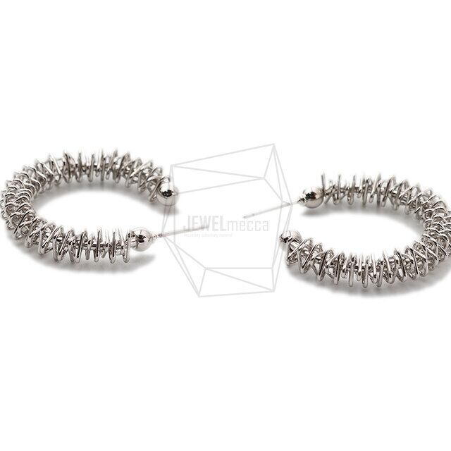 ERG-1650-R/2PCS/spring round Post Earring/30mm X 30mm/Rhodium Plated Over Brass,Stainless Post