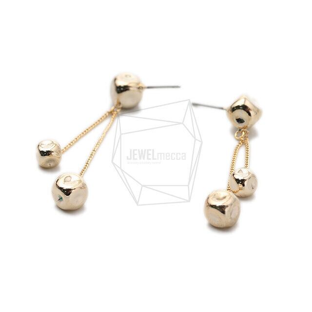 ERG-1652-G/2PCS/Triple Linked ball Post Earring/8mm X 45mm/Gold Plated Over Brass,Stainless Post