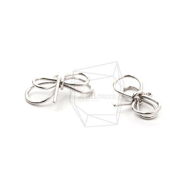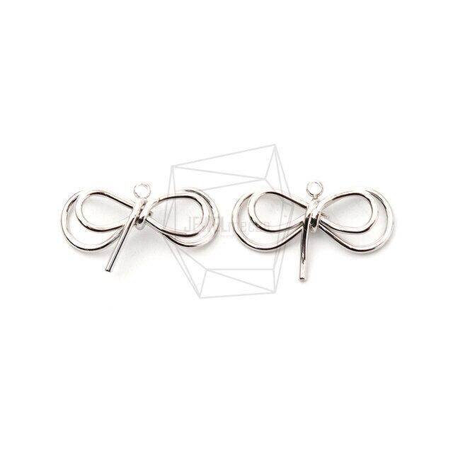 PDT-2436-R/2PCS/Rope Ribbon Pendant/13mm X 22mm/Rhodium Plated Over Brass