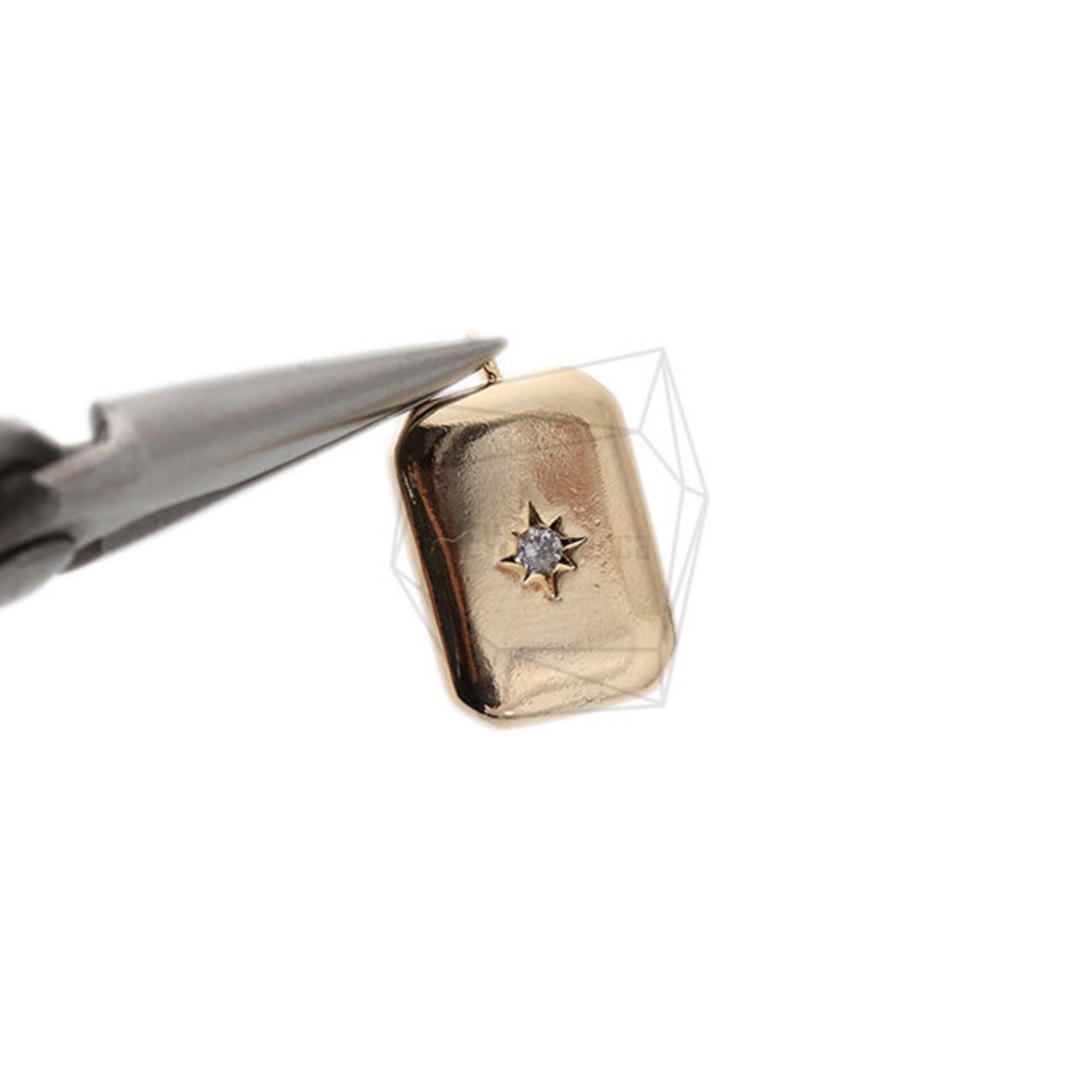 PDT-2439-G/2PCS/Cubic Square Pendant/12mm X 18mm/Gold Plated Over Brass