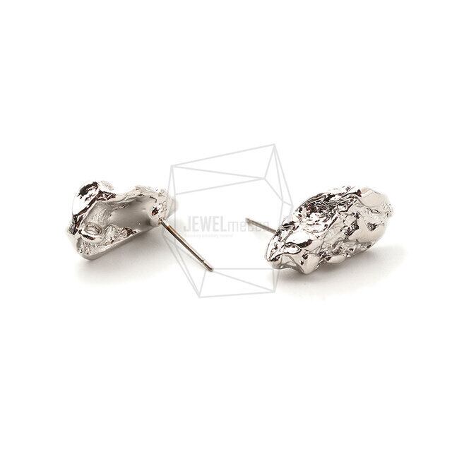ERG-1660-R/2PCS/Hammered Post Earring/12mm X 20mm/Rhodium Plated Over Tin, Titanium post