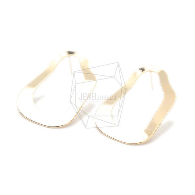 ERG-1661-G/2PCS/Irregular Post Earrings/26mm X 43mm/Gold Plated Over Brass