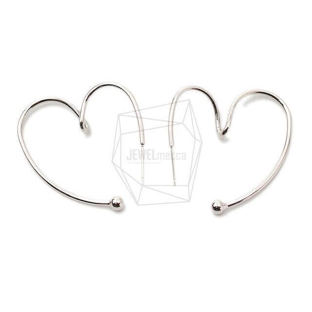ERG-1663-R/2PCS/Heart Earring Post/35mm x 38mm/Rhodium Plated over Brass