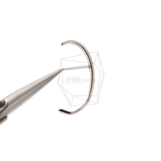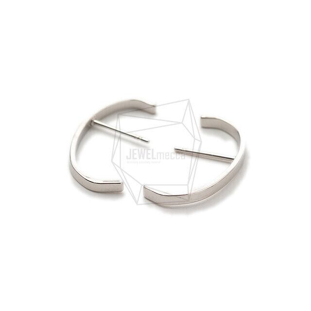 ERG-1670-R/2PCS/Half Round Post Earring/11mm X 24mm/Rhodium Plated Over Brass