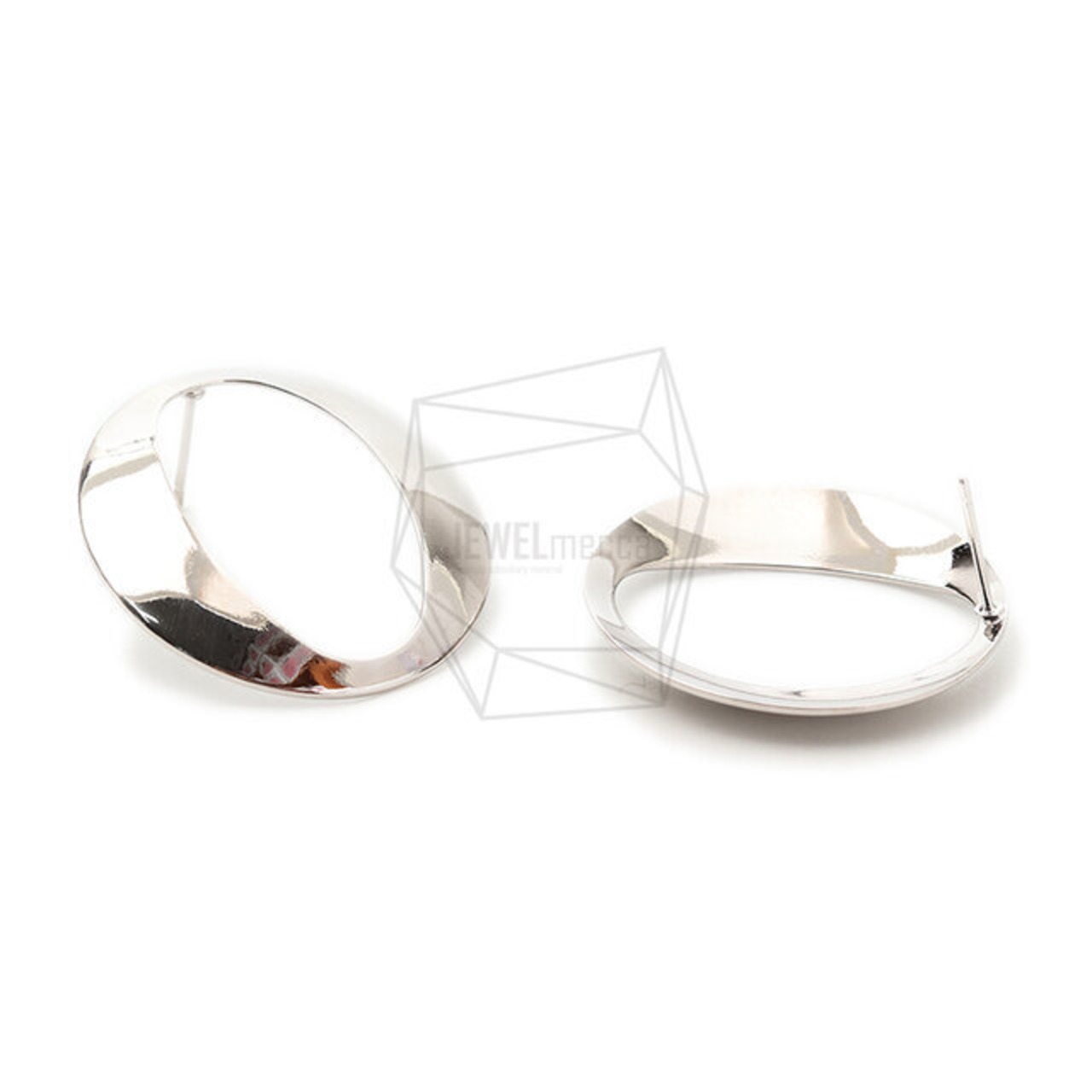 ERG-1674-R/2PCS/Twist Round Post Earrings/30mm X 30mm/Rhodium Plated Over Brass